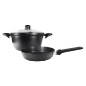 Торговая марка Panairo Тип набор посуды Страна происхождения Россия Материал литой алюминий Цвет корпуса черный Количество предметов в наборе 3 Покрытие мраморное Для индукционных плит Нет Использование в духовке Да Объем посуды, л 4 Состав комплекта 1 сковорода, 1 кастрюля, 1 крышка Приказ 804. Код раздела нет -