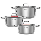 Торговая марка TalleR Тип набор посуды Страна происхождения Китай Материал нержавеющая сталь Цвет корпуса серебристый Количество предметов в наборе 3 Покрытие зеркальная полировка Для индукционных плит Да Использование в духовке Нет Объем посуды, л 2, 2.8, 5 Состав комплекта 3 крышки , 3 кастрюли Приказ 804. Код раздела нет -