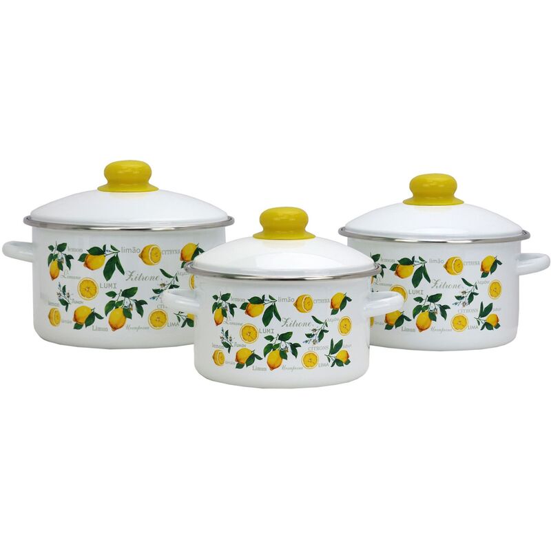 Набор кастрюль Эмаль Лимоны 550001532 эмалированная сталь 3 штуки (2 л, 3 л, 4 л).