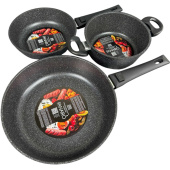 Торговая марка Panairo Тип набор посуды Цвет чёрный Страна происхождения Россия Материал литой алюминий Вес, кг 2.26 Материал ручек пластик Количество предметов в наборе 3 Объем, л 1.4 , 2 Диаметр, см 22 Особенности рельефное дно , съёмные ручки Толщина стенок, мм 3 Внутреннее покрытие мраморное Возможность мытья в посудомоечной машине да Совместимые плиты газовые , электрические , индукционные Толщина дна (мм) 5 Использование в духовке Да Высота борта 8 см , 6 см Крышка в комплекте Нет Материал крышки алюминий Состав комплекта 1 ковш , 1 сковорода , 1 кастрюля -