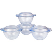 Горшочки изготовлены из экологически чистого жаропрочного стекла. Объем: 1200 мл. Размер: 180×120 мм. Максимальная температура использования: до 220°C. Комплектация в упаковке: 4 горшочка + 4 крышки. Горшочки можно мыть в посудомоечной машине.