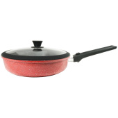 Качественная антипригарная сковорода Panairo. Посуда глубокая за счет высоких стенок, а их большая толщина лучше распределяет тепло, позволяет использовать разные температурные режимы с наибольшим эффектом и предотвращает попадание частичек еды за пределы сковороды. Это позволит надолго сохранить чистоту Вашей кухни. Толщина дна составляет 5 мм — это исключает деформацию корпуса, гарантирует ее долговечность, идеально распределяет нагрев по всей поверхности, обеспечивая длительное сохранение тепла, благодаря чему еда не пригорает и равномерно прожаривается. Посуда изготовлена из литого алюминия. Это говорит о том, что сковорода прослужит долгое время, гарантируя прочность и качество. Можно мыть в режиме ЭКО в посудомоечной машине, но дно темнеет. Подходит для всех типов плит, кроме индукционных.