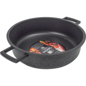 Жаровня Panairo Grantega induction диаметр 28 см 4 л литой алюминий (Gra-SOT-28-AL-I) Жаровня диаметром 28 см и объёмом 4 л предназначена для приготовления различных блюд, таких как тушение, томление, жарка или запекание. Благодаря высоким стенкам (8 см) и глубокой форме она идеально подходит для приготовления больших объёмов пищи, предотвращая разбрызгивание и сохраняя чистоту вашей кухни. Она совместима со всеми типами плит: газовыми, электрическими, стеклокерамическими, индукционными и галогеновыми конфорками. Жаровня оснащена удобными литыми алюминиевыми ручками, которые отличаются прочностью, устойчивостью к деформации и абсолютной безопасностью, так как не нагреваются в процессе готовки. Крышка в комплект не входит. Основные особенности и характеристики: 1. Толщина дна 5 мм гарантирует отсутствие деформации корпуса, долговечность, равномерный нагрев и длительное сохранение тепла, благодаря чему еда не пригорает и равномерно доходит до готовности. 2. Литой алюминий, из которого изготовлена жаровня, обеспечивает максимальную прочность и качество. Этот метод производства считается лучшим на сегодняшний день. 3. Безопасное пятислойное усиленное антипригарное покрытие, нанесённое методом напыления, не содержит PFOA и PTFE, сохраняет свои свойства на протяжении многих лет и не выделяет вредных веществ. 4. Мраморный чёрный цвет придаёт жаровне элегантный внешний вид, который органично впишется в любой интерьер и сохранится даже после длительного использования. 5. Возможность мытья в посудомоечной машине в режиме Эко. 6. Универсальность использования: жаровня подходит для всех типов плит, включая индукционные, а также может использоваться в духовке, что делает её идеальной для различных способов приготовления. Для продления срока службы рекомендуется использовать кухонные принадлежности из силикона или дерева. Перед первым использованием следует удалить все этикетки, вымыть жаровню тёплой мыльной водой и смазать внутреннюю поверхность тонким слоем растительного масла. Не рекомендуется нагревать пустую посуду или подвергать её резкому охлаждению.