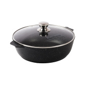 Алюминиевая жаровня Мечта — это литая толстостенная посуда с антипригарным покрытием повышенной стойкости, разработанным фирмой Weilburger Coatings GmbH. Покрытие разработано на водной основе и не содержит перфтороктановую кислоту. Благодаря слою, упроченному кристаллами минералов, покрытие отличается особой износостойкостью и отличными антипригарными свойствами. Стеклянная крышка позволяет наблюдать за процессом приготовления блюд. Жаровня подходит для всех типов плит, исключая индукционные. Диаметр — 26 см. Высота — 75 мм. Объем — 3 л.