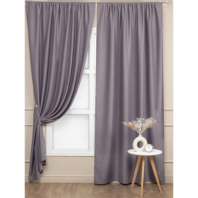 Комплект штор Amore Mio Блэкаут (2 портьеры 145×270) сиреневый. Портьера блэкаут торговой марки Amore Mio выполнена из приятной на ощупь шелковистой ткани. Главное ее преимущество — 70% защита от солнечного света. Портьера плотная, практически не пропускает свет и приглушает звук. Эти особенности способны обеспечить в помещении эффект темноты и шумоизоляции, поэтому блэкауты особенно популярны для спален и домашних кинотеатров. Сдержанный, классический дизайн подчеркнет индивидуальность любого Мебельа и поможет создать в комнате особое настроение. Изделие на шторной ленте и готово к использованию.