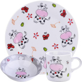 Предметы набора выполнены из высококачественного фарфора и декорированы красочным рисунком. Изделия легкие и функциональные. Такой набор обязательно понравится вашему ребенку, потому что теперь у него будет своя собственная посуда с ярким и оригинальным детским рисунком.