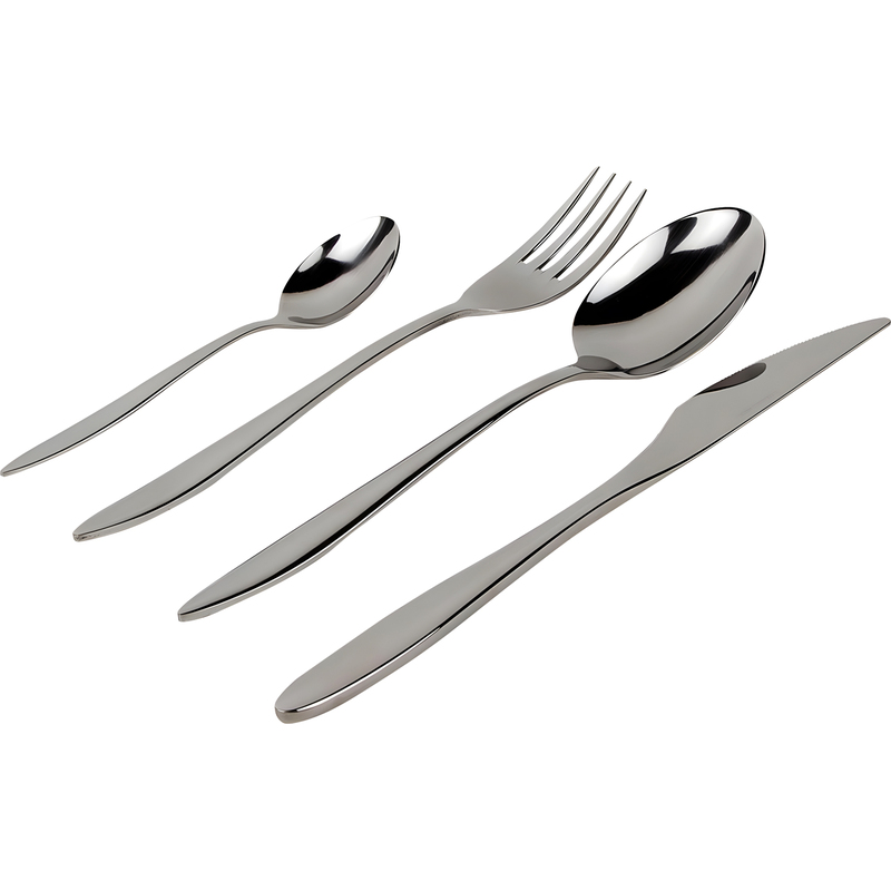 Набор столовых приборов Mia 24 предмета выполнен из нержавеющей стали 18/0 и предназначен для сервировки стола на 6 персон. Набор сочетает современный дизайн и практичность, подходя как для повседневного использования, так и для торжественных случаев. Столовые приборы Comas — продукция, выпускаемая известным европейским брендом. Испанская компания поддерживает высокие стандарты качества при производстве столовых приборов, тщательно отбирая сырьё и совершенствуя технологии изготовления. Набор включает: — 6 ножей столовых (длина 22.9 см); — 6 вилок столовых (21.3 см); — 6 ложек столовых (21.3 см); — 6 ложек чайных (13.6 см). Материал: нержавеющая сталь 18/0. Изделия можно мыть в посудомоечной машине. — перед первым использованием требуется тщательно промыть изделия; — хранить изделия в чистом, сухом виде; — не рекомендуется использовать губки с абразивным слоем; — не рекомендуется промывка изделий в посудомоечной машине с использованием моющих средств, в состав которых входит активный кислород. Внимание! Товар поставляется в транспортном коробе.