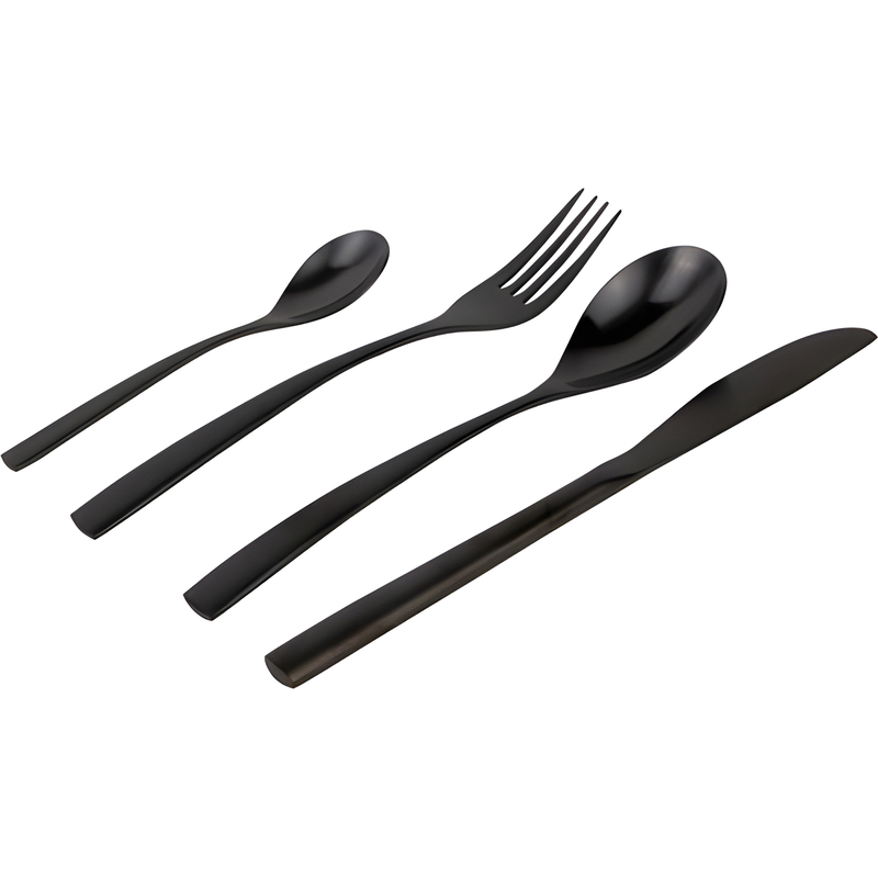 Набор столовых приборов BCN Colors Black 24 предмета выполнен из нержавеющей стали 18/0 с чёрным PVD-покрытием. Набор предназначен для сервировки стола на 6 персон и сочетает элегантность с практичностью. Столовые приборы Comas — продукция, выпускаемая известным европейским брендом. Испанская компания поддерживает высокие стандарты качества при производстве столовых приборов, тщательно отбирая сырьё и совершенствуя технологии изготовления. Набор включает: — 6 ножей столовых (длина 22.1 см); — 6 вилок столовых (20 см); — 6 ложек столовых (20 см); — 6 ложек чайных (14 см). Материал: нержавеющая сталь 18/0 с чёрным PVD-покрытием. Изделия можно мыть в посудомоечной машине. — перед первым использованием требуется тщательно промыть изделия; — хранить изделия в чистом, сухом виде; — не рекомендуется использовать губки с абразивным слоем; — не рекомендуется промывка изделий в посудомоечной машине с использованием моющих средств, в состав которых входит активный кислород. Внимание! Товар поставляется в транспортном коробе.
