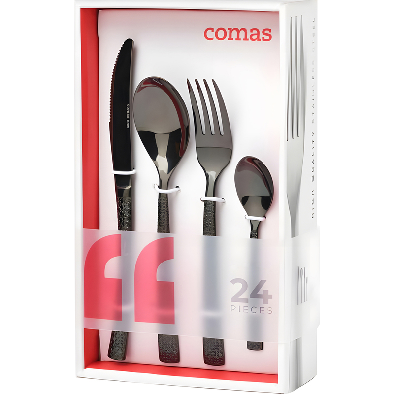 Торговая марка Comas Страна происхождения Испания Материал нержавеющая сталь Ценовая категория стандарт Количество предметов в наборе 24 Комплектация 6 вилок столовых , 6 ложек столовых , 6 ложек чайных , 6 ножей столовых Вид упаковки картонная коробка Количество персон 6 Возможность мытья в посудомоечной машине да -