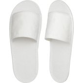 Одноразовые тапочки белого цвета для гостиничных номеров, а также различных медицинских и косметологических учреждений. Верх из нетканого материала спанбонд плотностью 50 г/кв. м. Подошва (слои снизу вверх):- ЭВА толщиной 3 мм;- картонная стелька толщиной 0,5 мм;- спанбонд плотностью 50 г/кв. м. Имеют универсальный размер: 38-42. Каждая пара упакована в индивидуальный полиэтиленовый пакет. Продаются упаковками по 100 пар.