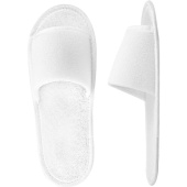 Тапочки одноразовые махровые открытый мыс подошва 3 мм белые (100 пар в упаковке). Эти махровые тапочки пользуются наибольшей популярностью среди компаний гостеприимства. Благодаря открытому мысу они подходят постояльцам с любым строением стопы и пальцев, не причиняя неудобств. Мягкая махровая ткань одновременно удерживает тепло в холодное время и позволяет коже дышать, если температура в помещении выше средней.
