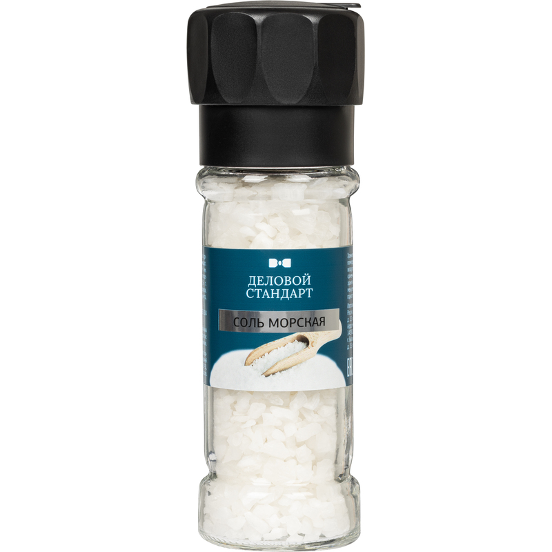 Соль Деловой Стандарт морская мельница 100 г Морская соль пищевая Деловой Стандарт в мельнице содержит большой процент полезных микроэлементов. В её составе есть железо, бром, хлор, селен, йод и многие другие так нужные для поддержания здоровья и красоты элементы. Мы предлагаем натуральный продукт Мёртвого моря в мельницах. Это Ваша возможность получить достойное качество специи и получить удовольствие от удобства использования мельницы в процессе приготовления блюд. Сорт высший. Помол 2-5 мм. Рекомендуемое суточное потребление соли не более 5-6 г. Может содержать следы орехов, горчицы, сельдерея, кунжута, глютена, молока. Хранить в сухом, хорошо вентилируемом помещении при относительной влажности воздуха не более 75%. Беречь от прямых солнечных лучей. После вскрытия упаковки хранить герметично закрытыми при рекомендуемых условиях в пределах срока годности. Возможно слёживание продукта. Масса нетто: 100 г. Срок годности: 36 месяцев с даты изготовления. Страна производства: Россия.