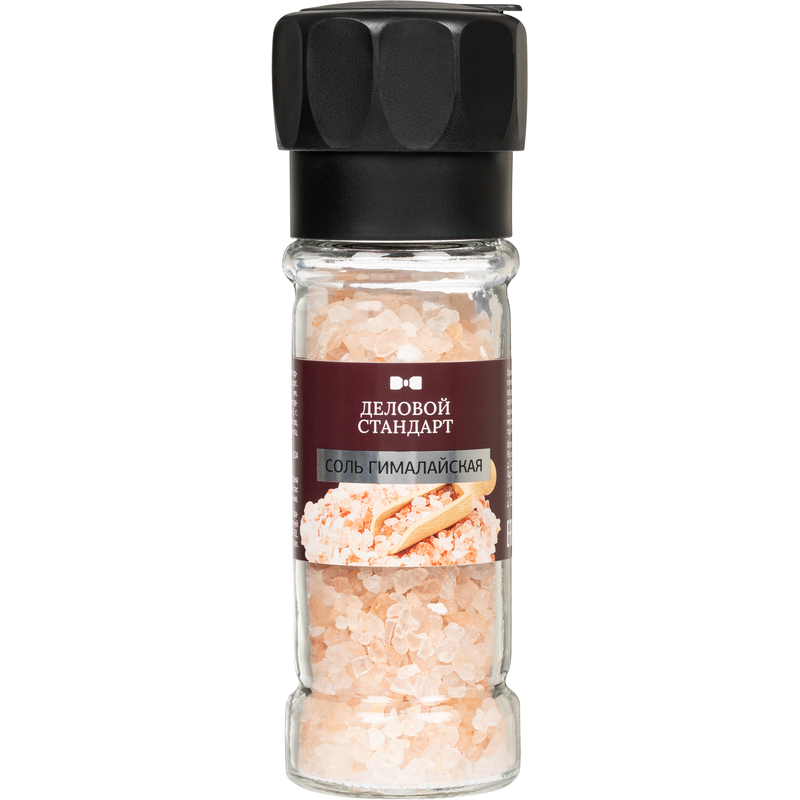 Гималайская соль Деловой стандарт в мельнице — натуральная соль в удобном формате. Соль содержит 84 микроэлемента, включая железо, благодаря которому она имеет розовый цвет. Сама соль обладает легким сладковато-соленым вкусом, который схож с привычной всем каменной солью. Она получила свое название из-за местонахождения — добывается преимущественно в гималайских горах, в Пакистане. Добавляя гималайскую соль в блюдо, Вы не только делаете его вкусным, но и обогащаете организм полезными веществами. Сорт высший. Помол 2-5 мм. Рекомендуемое суточное потребление соли не более 5-6 г. Может содержать следы орехов, горчицы, сельдерея, кунжута, глютена, молока. Хранить в сухом, хорошо вентилируемом помещении при относительной влажности воздуха не более 75%. Беречь от прямых солнечных лучей. После вскрытия упаковки хранить герметично закрытыми при рекомендуемых условиях в пределах срока годности. Возможно слеживание продукта. Масса нетто: 100 г. Срок годности: 48 месяцев с даты изготовления. Страна производства: Россия.