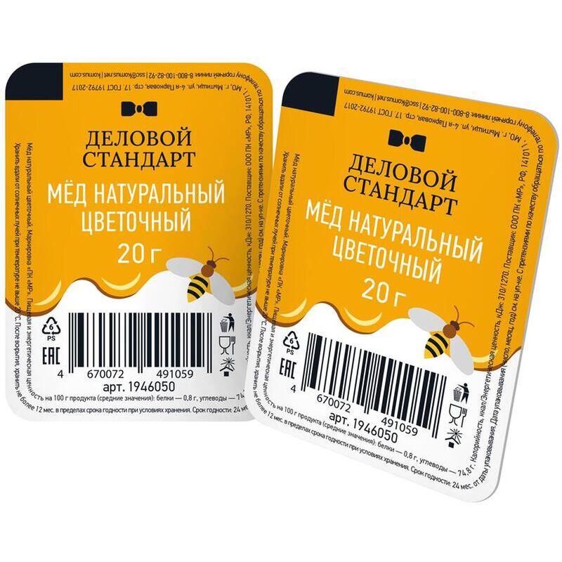 Мед цветочный порционный Деловой Стандарт 20 г (16 штук в упаковке).
