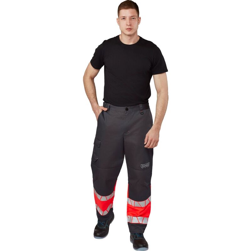 Брюки рабочие летние мужские Равелин с СОП красные/графит (размер 56-58, рост 194-200)