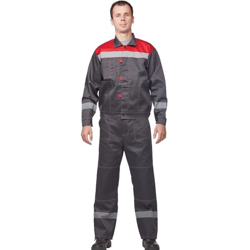 Костюм рабочий летний мужской л20-КБР с СОП серый/красный (размер 64-66, рост 182-188 см)