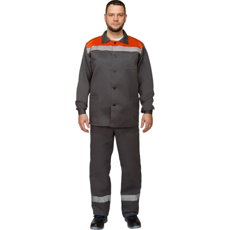 Костюм рабочий летний мужской л16-КБР с СОП серый/оранжевый (размер 64-66, рост 182-188 см)