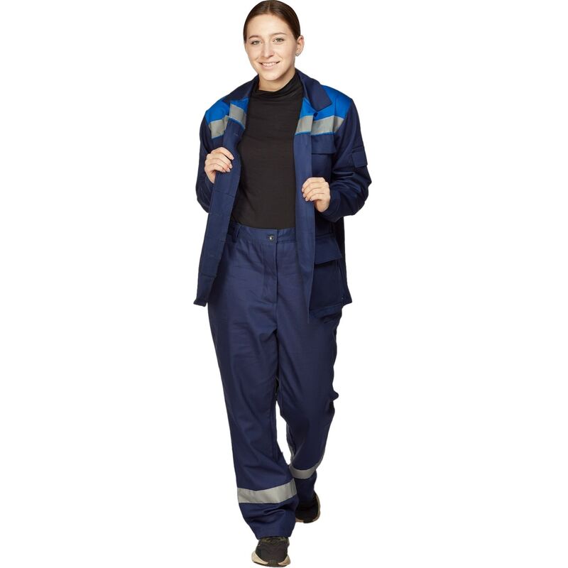 Куртка рабочая летняя женская л34-КУ со светоотражающим кантом синяя/васильковая (размер 60-62, рост 158-164)