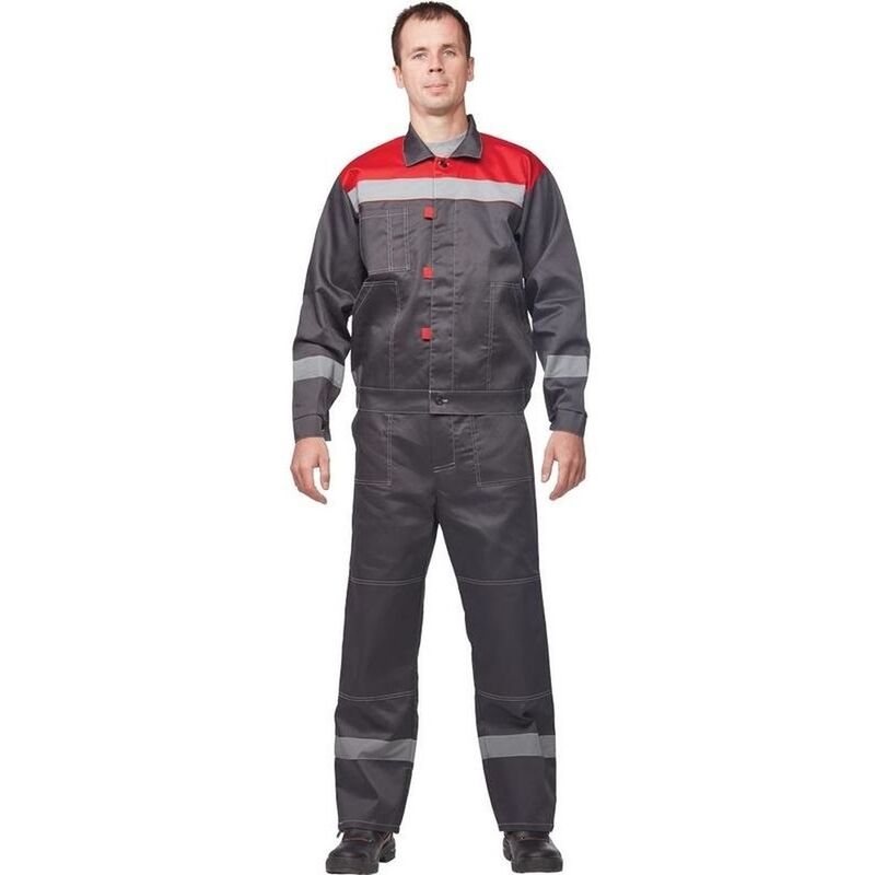 Костюм рабочий летний мужской л20-КБР с СОП серый/красный (размер 60-62, рост 170-176 см)