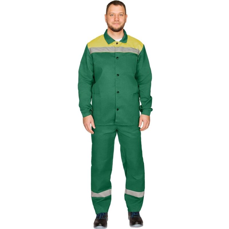 Костюм рабочий летний мужской л16-КПК с СОП зеленый/желтый (размер 44-46, рост 170-176)