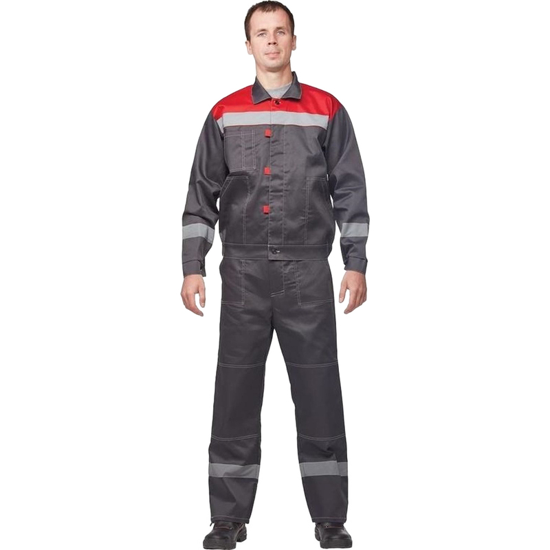 Костюм рабочий летний мужской л20-КБР с СОП серый/красный (размер 40-42, рост 158-164)