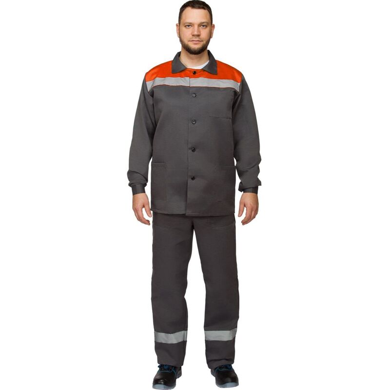 Костюм рабочий летний мужской л16-КБР с СОП серый/оранжевый (размер 52-54, рост 182-188 см)