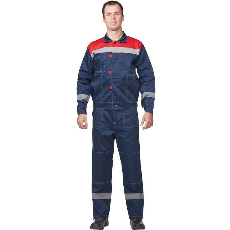 Костюм рабочий летний мужской л20-КПК с СОП синий/красный (размер 60-62, рост 158-164 см)