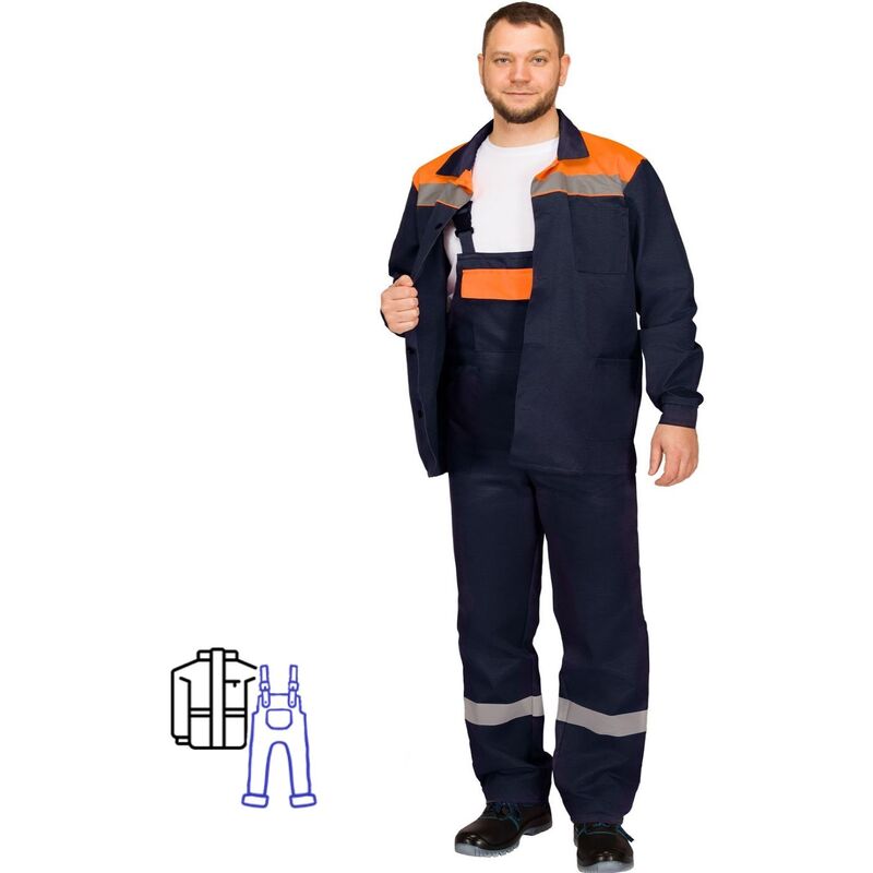 Полукомбинезон рабочий летний мужской л34-ПК со светоотражающим кантом синий (размер 56-58, рост 170-176)