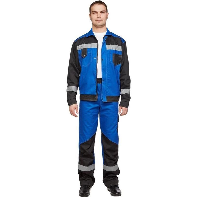 Костюм рабочий летний мужской л21-КБР с СОП васильковый/черный (размер 52-54, рост 182-188 см)