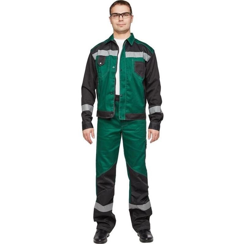 Костюм рабочий летний мужской л21-КБР с СОП зеленый/черный (размер 48-50, рост 182-188 см)