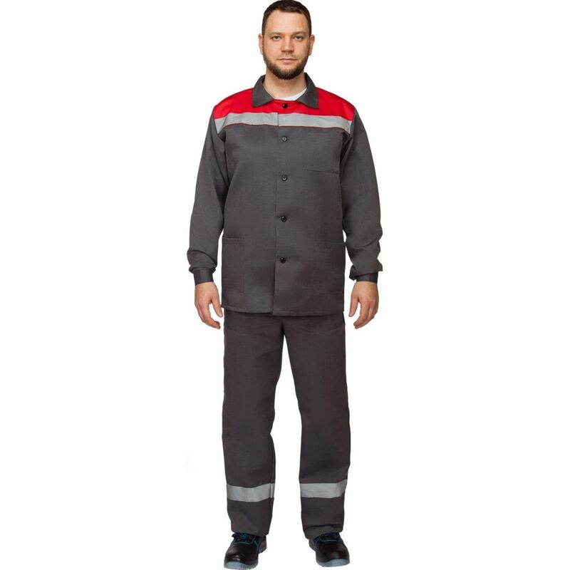 Спецодежда летняя костюм мужской л16-КБР с СОП (куртка+брюки). Размер 48-50. Рост 158-164. Легкий летний костюм состоит из удлиненной куртки прямого силуэта на пуговицах с контрастной кокеткой и тремя накладными карманами, и простых прямых брюк на поясе с двумя накладными карманами. Куртка и брюки оснащены светоотражающей полосой — 5 см. Ткань костюма смесовая (80% полиэстер, 20% хлопок) плотностью 210 г/кв.м. Костюм можно использовать при работе на любом производстве или обслуживающем предприятии.