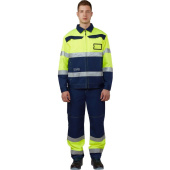 • Визуальные элементы защиты: световозвращающая лента шириной 50 мм: по середине и низу куртки, средне и низу рукавов, и в нижней части брюк. По площади светоотражающих элементов и флуоресцентной ткани костюм соответствует II классу сигнальной защиты.