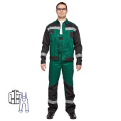 Костюм рабочий летний мужской л21-КПК КОС212 с СОП зеленый/черный (размер 60-62, рост 170-176).