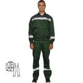 л20-КПК состоит из куртки и полукомбинезона. Изготовлен из смесовой ткани (65% полиэстер, 35% хлопок), плотностью 210 г/кв.м. Полукомбинезон с накладными карманами, гульфиком на пуговицах, эластичной тесьмой по талии спинки и регулируемыми бретелями. Куртка прямого силуэта c объемными накладными карманами и супатнoй застежкой на пуговицы. Куртка и полукомбинезон оснащены светоотражающей полосой. Сфера применения: озеленение. Размер: 52–54. Рост: 182–188.