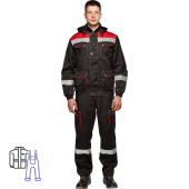 Костюм рабочий летний мужской черный/красный. Состав ткани: 80% полиэстер, 20% хлопок. Плотность ткани: 200 +/- 10 г/кв.м. Верхние накладные карманы с фигурными клапанами и перекантом на кнопках. Нижние карманы с полуобъемом, с фигурными клапанами и перекантом на кнопках. Укороченная куртка на поясе с частичной стяжкой на эластичной резинке. Съемный капюшон на пуговицах с регулировкой объема по лицевой части. Полукомбинезон с многофункциональными карманами. Эластичная резинка по талии спинки. В костюме используется светоотражающая полоса 50 мм. Размер: 52-54. Рост: 170-176.