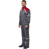 Костюм рабочий летний мужской ГИДРА-2 ЛА01-КПК с СОП серый/красный с антистатической нитью (размер 64-66, рост 170-176 см).