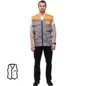 Жилет рабочий л-30-ЖЛ подходит для использования летом. Его размер: 52-54, рассчитан на рост: 170-176. Цвет — серый с оранжевыми вставками.