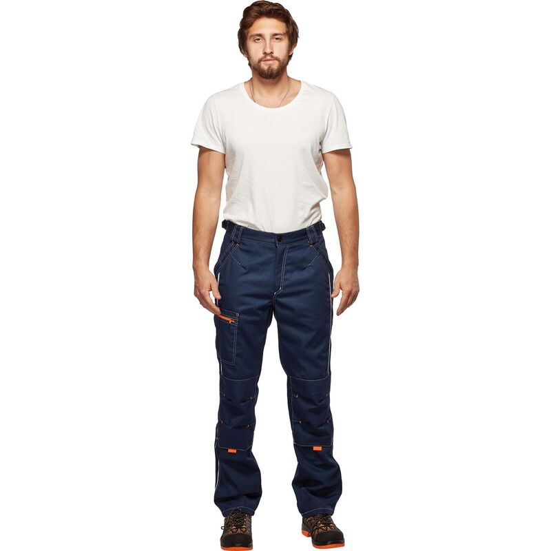 Брюки рабочие летние мужские л34-БР со светоотражающим кантом синие (размер 68-70, рост 194-200)