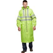 Плащ влагозащитный Тайфун ПВХ на молнии лимонный с СОП (размер 56-58, рост 170-176). Плащ «Тайфун» лимонный обеспечивает максимальную защиту от дождя, ветра, снега и загрязнений. Он также гарантирует безопасность в условиях плохой видимости благодаря яркому лимонному цвету и светоотражающим элементам. Этот плащ идеально подходит для работы в дорожных и коммунальных службах, городском хозяйстве, транспорте и на открытом воздухе. Плащ выполнен из полиэфира с ПВХ, плотность ткани — 200 г/кв.м. Это позволяет эффективно защищать от влаги и загрязнений. Проклеенные швы и ветрозащитная планка на молнии обеспечивают полную защиту от протечек. Модель имеет прямой силуэт с рукавами реглан. Капюшон состоит из 3 частей и регулируется с помощью шнура, что увеличивает эргономичность. Застежка на витой молнии с внутренней ветрозащитной планкой препятствует попаданию влаги. Манжеты на рукавах обеспечивают дополнительную защиту при активном движении. Вентиляционные отверстия в области подмышечных впадин и кокетки способствуют выводу влаги из внутреннего пространства. Шлица на спинке плаща придает свободу движений. На плащ нанесены светоотражающие полосы шириной 5 см, что повышает видимость в темное время суток, в соответствии с ГОСТом. Стандарт: ТР ТС 019/2011, ГОСТ 12.4.281-2014. Рекомендации по уходу: стирка при температуре не выше 30°C, не использовать отбеливатели. Подобрать размер . Цвет на изображении товара в интернет-магазине или в печатном каталоге может отличаться от оригинала из-за особенностей цветопередачи. ЗАКОНОДАТЕЛЬНЫЕ И ТЕХНИЧЕСКИЕ ДОКУМЕНТЫ: