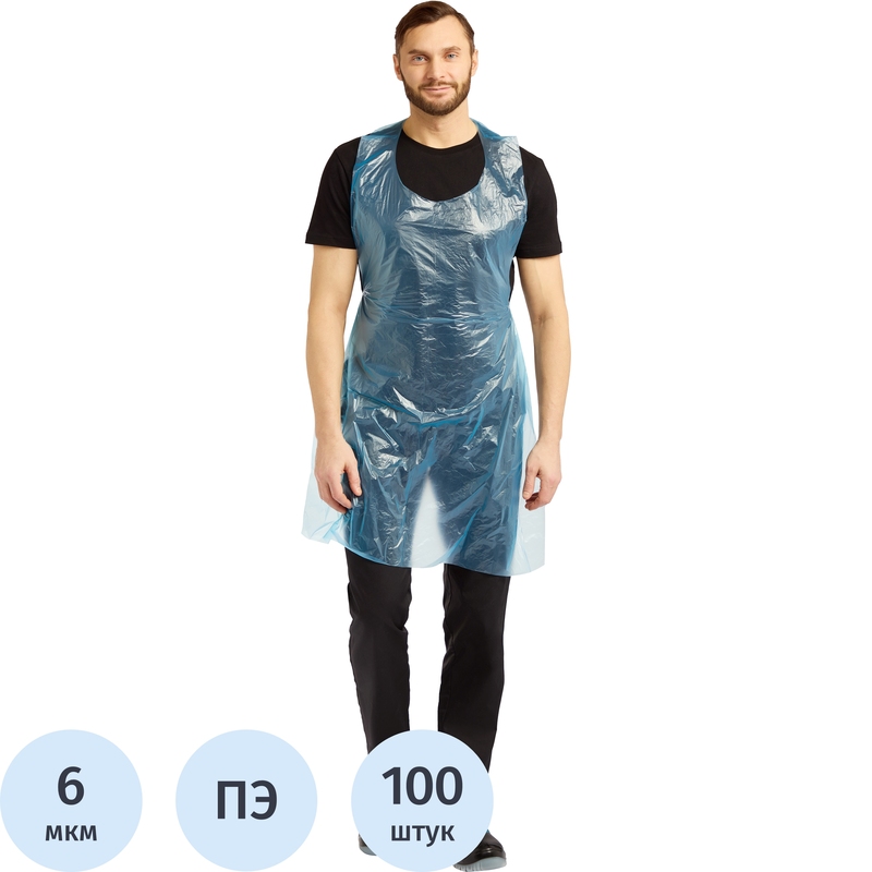 Фартук одноразовый 68x110 см полиэтиленовый 6 мкм голубой в пласте (100 штук в упаковке)
