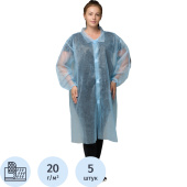 Халат одноразовый на липучке голубой (размер 52-54, XL, 5 штук в упаковке) выполнен из спанбонда, состав ткани: 100% полипропилен. Плотность составляет 20 г/кв.м. Материал лёгкий, воздухопроницаемый и влагоустойчивый. Силуэт халата прямой, рукава длинные. Оснащён застёжкой на липучках для удобства надевания, снятия и регулировки посадки. Подходит как для мужчин, так и для женщин. Изготовлен по стандарту ТР ТС 019/2011 (ЕФЭС N RU Д-RU.РА01.В.68632/21 от 25.03.2021г.). Рекомендуется для применения в медицине, пищевой промышленности и салонах красоты в качестве одноразовой защитной одежды.