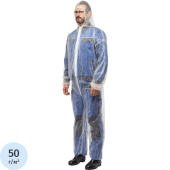 Каспер представляет собой комбинезон с капюшоном, предназначенный для защиты человека от различных производственных загрязнений, нетоксичной пыли и следов краски. Плотность: 50 г/кв.м. Ламинированный. Размер: 60–62, XXXL. Длительность эксплуатиции СИЗ зависит от правильного ношения, условий работы и хранения. Не пригоден для повторного использования.