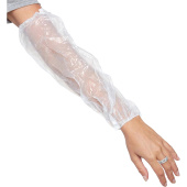 Нарукавники полиэтиленовые. Тип крепления резинки — машинный. Применяются во многих областях. Защищают нижнюю часть руки от попадания химических агрессивных веществ, биологических материалов, обладают высокой устойчивостью к кислотам, растворителям, спиртам, к пищевым продуктам, отличаются механической прочностью. Вес за пару: 3 гр. Размер: 25×40 см. Толщина: 14 мкм. Диамерт резинки: 0,63 мм. Цвет белый. Упаковка: 50 пар (100 штук). Соответствует стандарту: ТУ 22.2910- 012-33186646-2020 Произведен согласно ТУ.