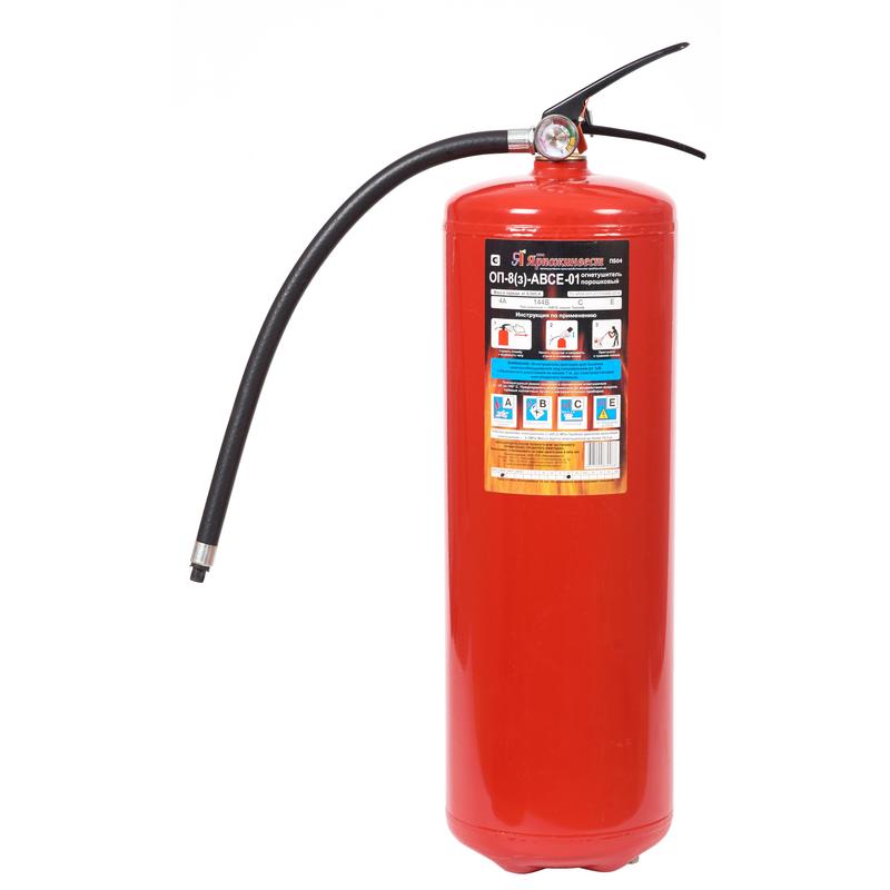 Огнетушитель порошковый ОП-8 (з) АВСЕ предназначен для защиты помещений производственного и хозяйственного назначения, применения на автомобильном, железнодорожном, речном транспорте, морских судах и в бытовых условиях в качестве первичных средств тушения пожаров классов А (твердых горючих веществ), В (жидких горючих веществ), С (газообразных горючих веществ)и электроустановок, находящихся под напряжением до 1000 В. Огнетушитель не предназначен для тушения загораний щелочных и щелочноземельных металлов и материалов, горение которых может происходить без доступа воздуха. Рекомендуется использовать при температуре от -50 до +50 °C.