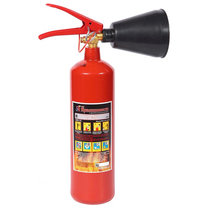 Огнетушитель углекислотный ОУ-1 ВСЕ предназначен для тушения загораний различных веществ, горение которых не может происходить без доступа воздуха, загорании на электрифицированном железнодорожном транспорте, электроустановок, находящихся под напряжением не более 10 кВ, загорания в музеях, картинных галереях и архивах, широкое распространение в офисных помещениях при наличии оргтехники, а так же в жилом секторе. Рекомендуется использовать при температуре от -40 до +50 °C. Преимуществом углекислотного огнетушителя является отсутствие следов тушения, т.к. углекислота после использования не оставляет следов и грязи. Огнетушитель не предназначен для тушения веществ, горение которых может происходить без доступа воздуха (алюминий, магний и их сплавы, натрий, калий).