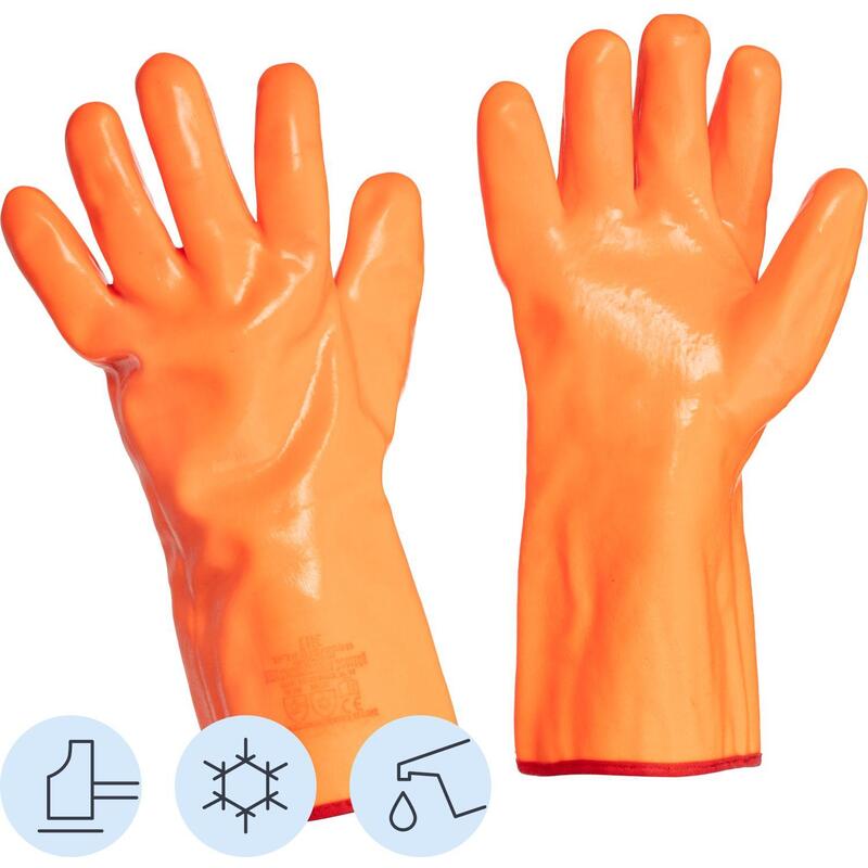 Перчатки рабочие утепленные от порезов и проколов с ПВХ покрытием оранжевые (размер 11, XXL)