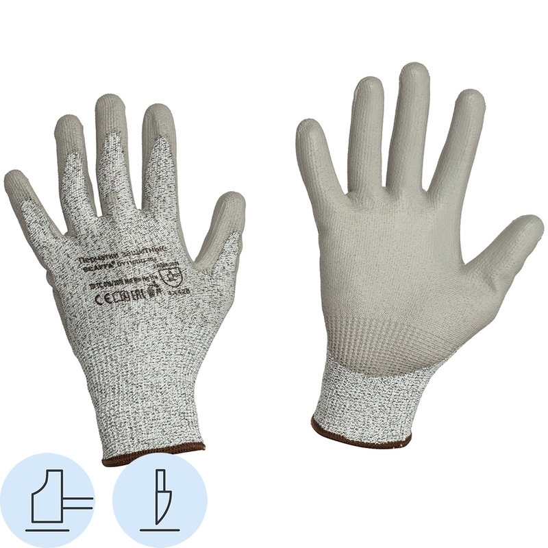 Перчатки для защиты от порезов Scaffa Рубеж ПУ В DY110DG-PU с полиуретановым покрытием класс защиты В (5) (13 класс вязки, размер 10 (XL))