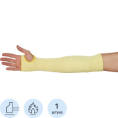 Нарукавник кевларовый Терма с защитой ладони, запястья, предплечья и локтевого сгиба от порезов и повышенных температур. Комфортное прилегание сохраняет форму в процессе эксплуатации. Материал: двухслойный трикотажный 100% Кевлар. Сфера применения: автомобильная, стекольная, металлургическая промышленность, работа на металлорежущих станках, погрузка-разгрузка листового железа, производство бумаги и картона, производство пластиков. Длина: 45 см. Комфортная работа по показателю термостойкость (контакт) до 300 С-5 секунд, соответствует ТР ТС 019/2011. Устойчивость к порезам: 4. Стойкость к прожиганию — 60 секунд. Цена указана за 1 шт, артикул = 1 шт.
