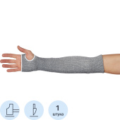 Двухслойный трикотажный нарукавник из высокопрочного волокна 'Дайнима' и полиамида для защиты запястья, предплечья и локтевого сгиба от истирания и порезов. Удобное отверстие для большого пальца обеспечивает защиту запястья. Стойкость на порез (усилие на образование пореза 1-го слоя более 16 н/мм2) т. е. 4-тый уровень защиты по EN 388-244ХХ. Работа с острыми кромками стекла, металла, пластика и т. д. Длина 45 см. Размер: 10.