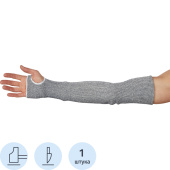 Двухслойный трикотажный нарукавник из высокопрочного волокна 'Дайнима' и полиамида для защиты запястья, предплечья и локтевого сгиба от истирания и порезов. Удобное отверстие для большого пальца обеспечивает защиту запястья. Стойкость на порез (усилие на образование пореза 1-го слоя более 16 н/мм2 ). 4-ты уровень защиты по ГОСТ Р ЕН 399-2009. Работа с острыми кромками стекла, металла, пластика. Длина 56 см. Размер: 10.